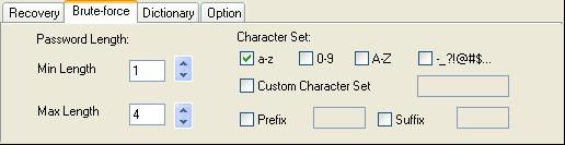Custom character set-- Can you remember any number or letter in the password? If so, please type it in the Custom character set edit box.